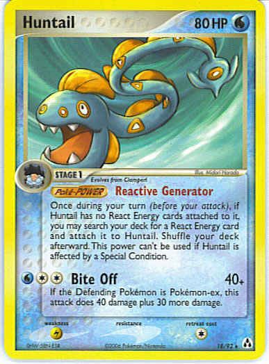 | Type | Water | | Pokemon serie | Legend Maker | | Stadie | Stage 1 | | HP | 80 | | Sjældenhed | Rare | | Tilbagetrækning | 1 | | Svaghed | L | | Kortnummer | 18 | | Evne |
