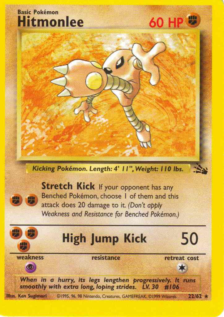 | Type | Fighting | | Pokemon serie | Fossil | | Stadie | Basic | | HP | 60 | | Sjældenhed | Rare | | Tilbagetrækning | 1 | | Svaghed | P | | Kortnummer | 22 | | Evne |