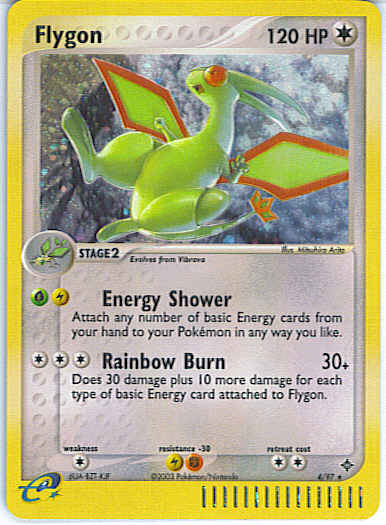 [CCC] Rainbow Burn (30+) Does 30 damage plus 10 more damage for each type of Basic Energy card attached to Flygon.
