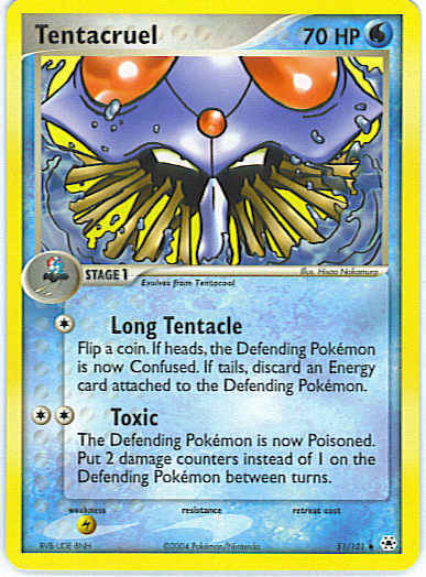 Evne[C] Long Tentacle - Flip a coin. If heads, the Defending Pokemon is now Confused. If tails, discard an Energy card attached to the Defending Pokemon.