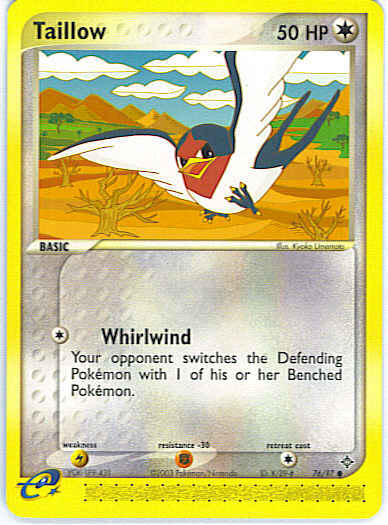| Type | Colorless | | Pokemon serie | Dragon | | Stadie | Basic | | HP | 50 | | Sjældenhed | Common | | Tilbagetrækning | 1 | | Modstand | F | | Svaghed | L | | Kortnummer | 76 | | Evne | [C] Whirlwind - Your opponent switches the Defending Pokemon with 1 of his or her Benched Pokemon. | | Evne2 | [C] Whirlwind - Your opponent switches the Defending Pokemon with 1 of his or her Benched Pokemon. | | Kunstner | Kyoko Umemoto |