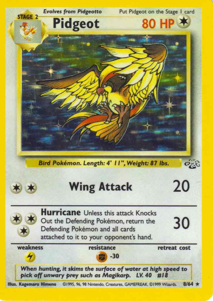 | Type | Colorless | | Pokemon serie | Jungle | | Stadie | Stage 2 | | HP | 80 | | Sjældenhed | Rare | | Modstand | F | | Svaghed | L | | Kortnummer | 8 | | Evne |