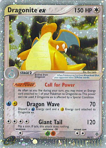 | Type | Colorless | | Pokemon serie | Dragon | | Stadie | Stage 2 | | HP | 150 | | Sjældenhed | Ultra-Rare | | Tilbagetrækning | 2 | | Modstand | FG | | Svaghed | C | | Kortnummer | 90 | | Evne | [LW] Dragon Wave (70) Discard a W Energy card and a L Energy card attached to Dragonite ex. [CCCC] Giant Tail (120) Flip a coin. If tails, this attack does nothing. | | Evne2 | [LW] Dragon Wave (70) Discard a W Energy card and a L Energy card attached to Dragonite ex. [CCCC] Giant Tail (120) Flip a coin. If tails, this attack does nothing. | | Kunstner | Ryo Ueda |