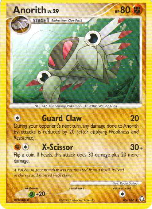Evne2[C] Guard Claw (20) During your opponent's next turn, any damage done to Anorith by attacks is reduced by 20 (after applying Weakness and Resistance).