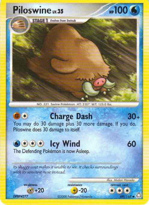 Evne[CF] Charge Dash (30+) You may do 30 damage plus 30 more damage. If you do, Piloswine does 30 damage to itself.