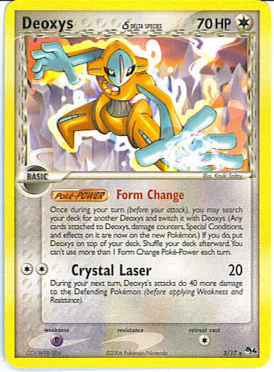 Evne on it are now on the new Pokemon.) If you do, put Deoxys on top of your deck. Shuffle your deck afterward. You can't use more than 1 Form Change Poke-Power each turn. (Poke-POWER)