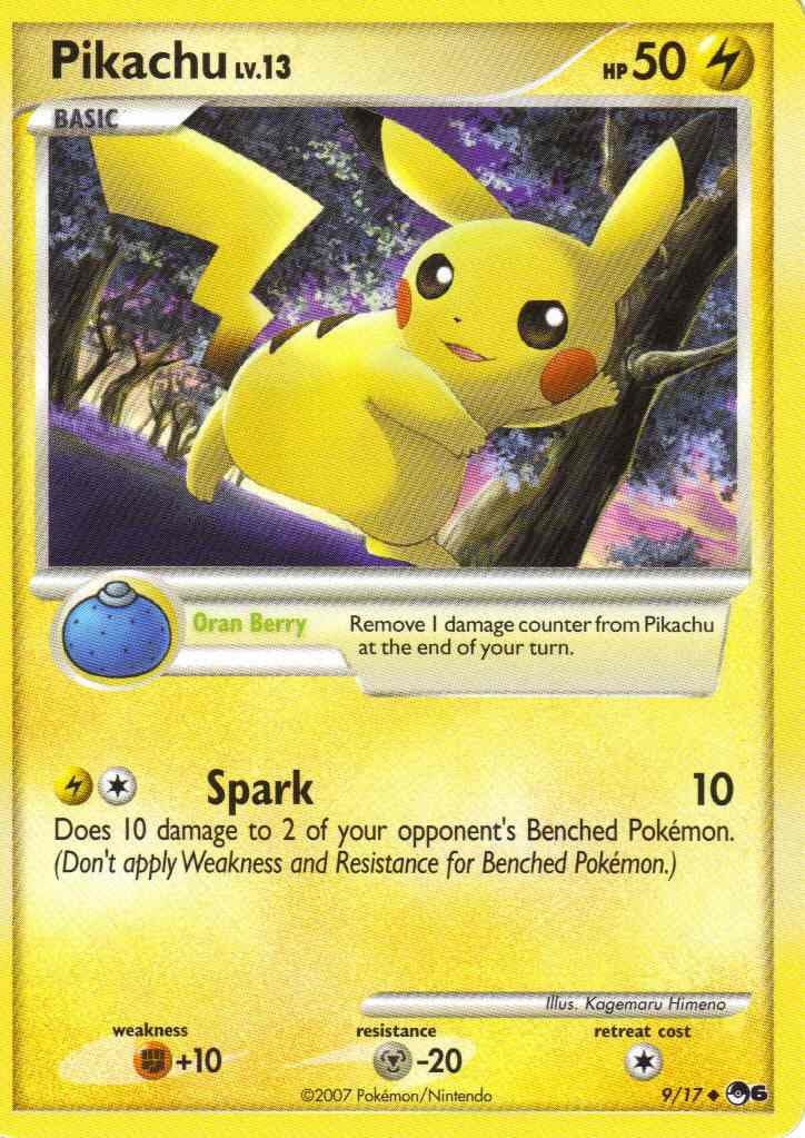 | Type | Lightning | | Pokemon serie | OP Series 6 | | Stadie | Basic | | HP | 50 | | Sjældenhed | Common | | Tilbagetrækning | 1 | | Svaghed | F | | Kortnummer | 9 | | Evne |