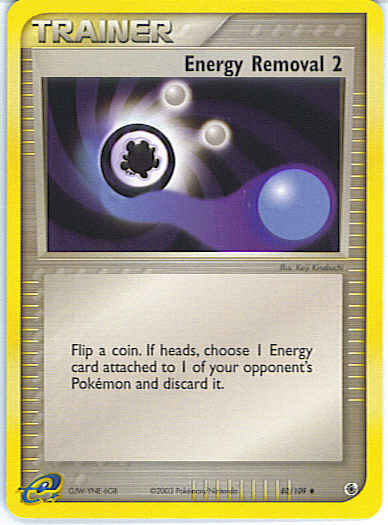 Evne2 Flip a coin. If heads, chose 1 Energy card attached to 1 of your opponent's Pokemon and discard it.