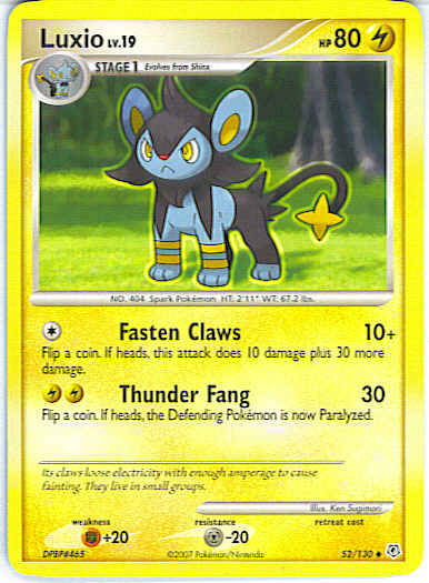 | Type | Lightning | | Pokemon serie | Diamond and Pearl | | Stadie | Stage 1 | | HP | 80 | | Sjældenhed | Uncommon | | Modstand | M-20 | | Svaghed | F+20 | | Kortnummer | 52 | | Evne |