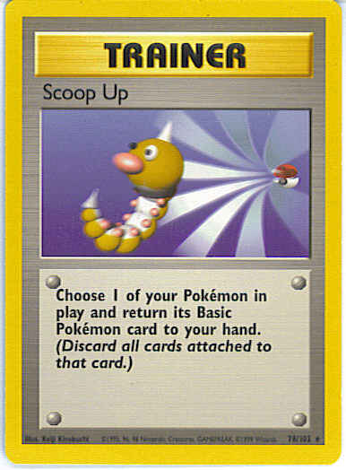 Choose 1 of your own Pokemon in play and return its Basic Pokemon card to your hand. (Discard all cards attached to that card.)