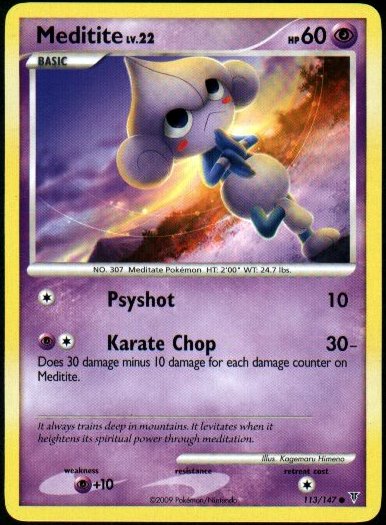 [PC] Karate Chop (30-) Does 30 damage minus 10 damage for each damage counter on Meditite.