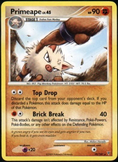 Evne [CC] Top Drop - Discard the top card from you opponent's deck. If you discarded a Pokemon, this attack does damage equal to the HP of that Pokemon.