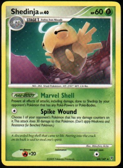 Evne of attacks, including damage, done to Shedinja by your opponent's Pokemon that has any Poke-Powers or Poke-Bodies. (Poke-BODY)