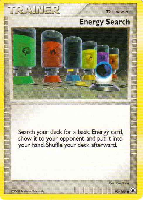 Search your deck for a basic Energy card, show it to your opponent, and put it into your hand. Shuffle your deck afterward.