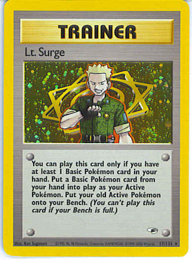 Evne You can play this card only if you have at least 1 Basic Pokemon card in your hand. Put a Basic Pokemon card from your hand into play as your Active Pokemon. Put your old Active Pokemon onto your Bench. (You can't play this card if your Bench is full.)