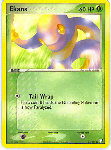 | Type | Grass | | Pokemon serie | Team Rocket Returns | | Stadie | Basic | | HP | 60 | | Sjældenhed | Common | | Tilbagetrækning | 1 | | Svaghed | P | | Kortnummer | 55 | | Evne | [C] Tail Wrap - Flip a coin. If heads, the Defending Pokemon is now Paralyzed. | | Evne2 | [C] Tail Wrap - Flip a coin. If heads, the Defending Pokemon is now Paralyzed. | | Kunstner | Atsuko Nishida |