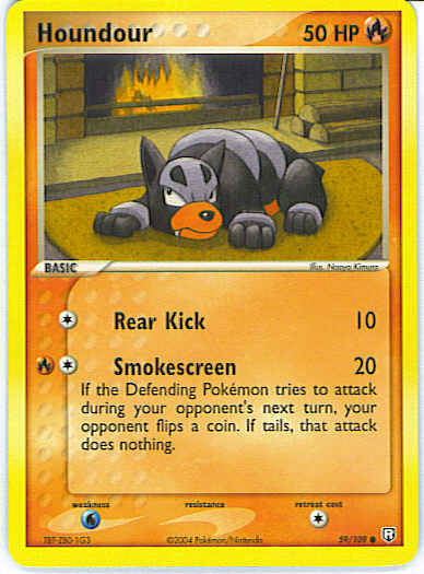 [CR] Smokescreen (20) If the Defending Pokemon tries to attack during your opponent's next turn, your opponent flips a coin. If tails, that attack does nothing.