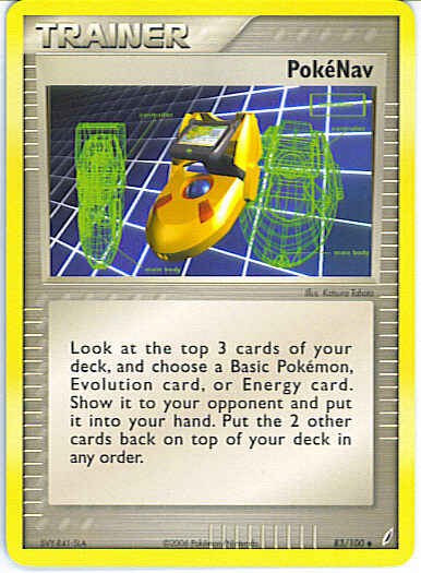 Evne Look at the top 3 cards of your deck, and choose a Basic Pokemon, Evolution, or Energy Card. Show it to your opponent and put it into your hand. Put the 2 other cards back on top of your deck in any order.