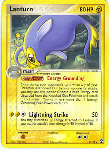 Evne [CLL] Lightning Strike (50) You may discard all L Energy attached to Lanturn. If you do, this attack's base damage is 90 instead of 50.