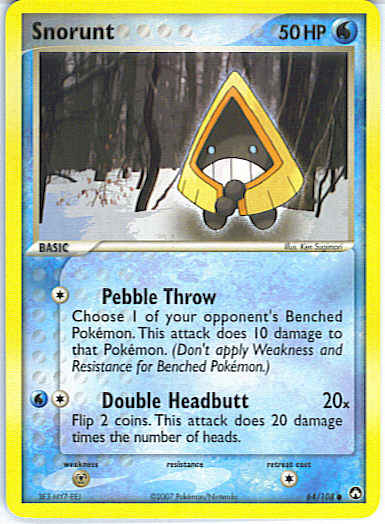 | Type | Water | | Pokemon serie | Power Keepers | | Stadie | Basic | | HP | 50 | | Sjældenhed | Common | | Tilbagetrækning | 1 | | Svaghed | M | | Kortnummer | 64 | | Evne |
