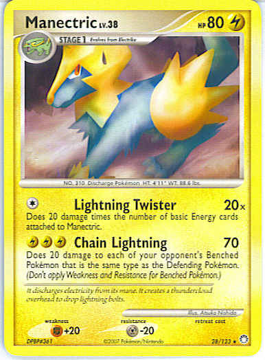[C] Lightning Twister (20x) Does 20 damage times the number of basic Energy cards attached to Manectric.
