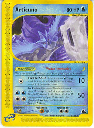 Evne[C] Freeze Solid (10) If there are any W Energy cards in your discard pile, flip a coin. If heads, attach 1 of them to Articuno.