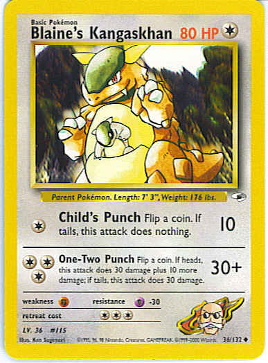 | Type | Colorless | | Pokemon serie | Gym Heroes | | Stadie | Basic | | HP | 80 | | Sjældenhed | Uncommon | | Tilbagetrækning | 3 | | Modstand | P | | Svaghed | F | | Kortnummer | 36 | | Evne |