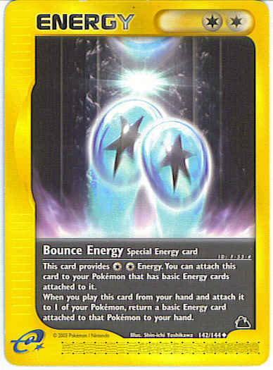 | Type | Energy | | Pokemon serie | Skyridge | | Stadie | Special Energy | | Sjældenhed | Uncommon | | Kortnummer | 142 | | Evne | This card provides C C Energy. You can attach this card to your Pokemon that has basic Energy cards attached to it. When you play this card from your hand and attach it to 1 of your Pokemon, return a basic Energy card attached to that Pokemon to your hand.
