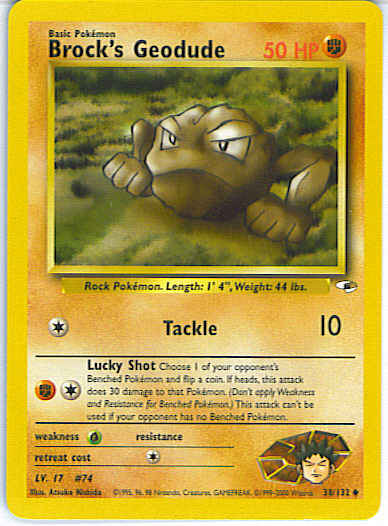 | Type | Fighting | | Pokemon serie | Gym Heroes | | Stadie | Basic | | HP | 50 | | Sjældenhed | Uncommon | | Tilbagetrækning | 1 | | Svaghed | G | | Kortnummer | 38 | | Evne |