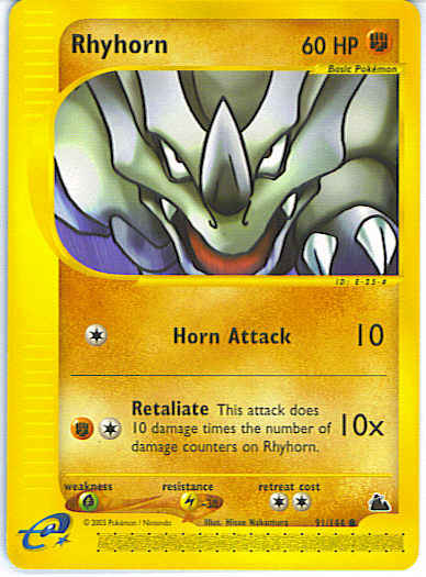 [CF] Retaliate (10x) This attack does 10 damage times the number of damage counters on Rhyhorn.