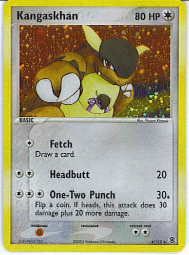 | Type | Colorless | | Pokemon serie | Fire Red Leaf Green | | Stadie | Basic | | HP | 80 | | Sjældenhed | Rare | | Tilbagetrækning | 2 | | Svaghed | F | | Kortnummer | 6 | | Evne |