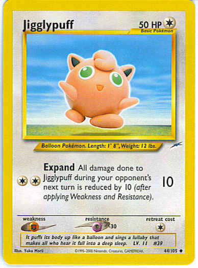 | Type | Colorless | | Pokemon serie | Neo Destiny | | Stadie | Basic | | HP | 50 | | Sjældenhed | Uncommon | | Tilbagetrækning | 1 | | Modstand | P | | Svaghed | F | | Kortnummer | 44 | | Evne |