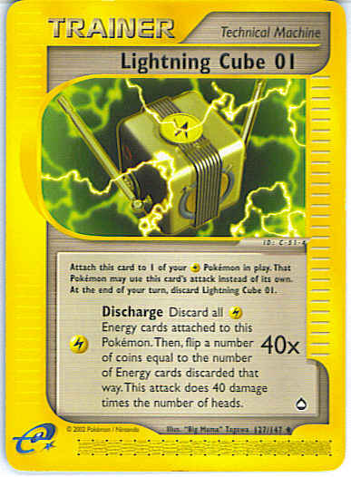 [L] Discharge (40x) Count the number of L Energy cards attached to this Pokemon. Discard those Energy cards and flip that many coins. This attack does 40 damage times the number of heads.