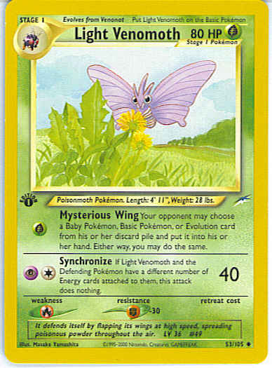 [CP] Synchronize (40) If Light Venomoth and the Defending Pokemon have a different number of Energy cards attached to them, this attack does nothing.