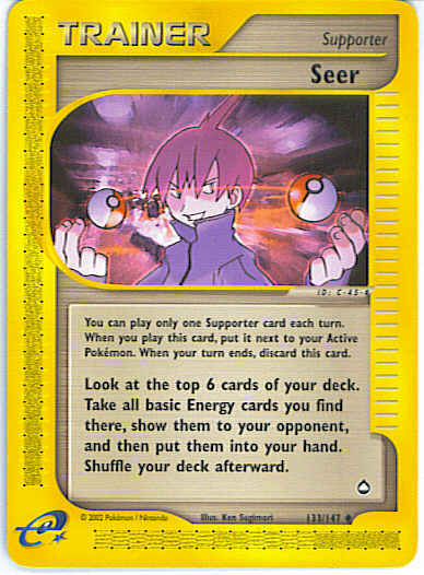 | Type | Trainer | | Pokemon serie | Aquapolis | | Stadie | Trainer (Supporter) | | Sjældenhed | Uncommon | | Kortnummer | 133 | | Evne |