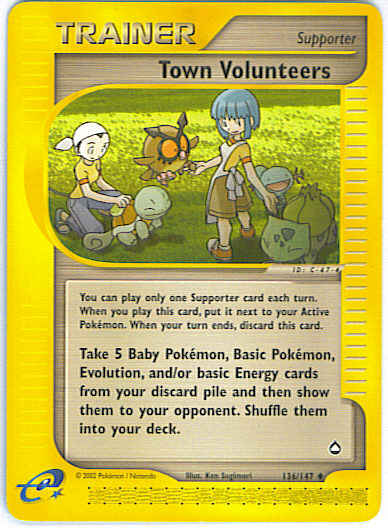 Evne Choose up to 5 Pokemon cards and/or basic Energy cards from your discard pile. Show them to your opponent and shuffle them into your deck.
