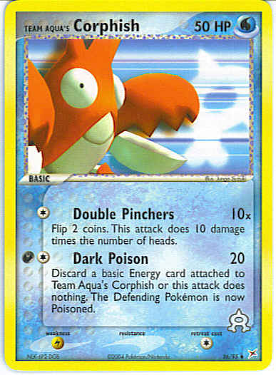 [CD] Dark Poison (20) Discard a basic Energy card attached to Team Aqua's Corphish or this attack does nothing. The Defending Pokemon is now Poisoned.