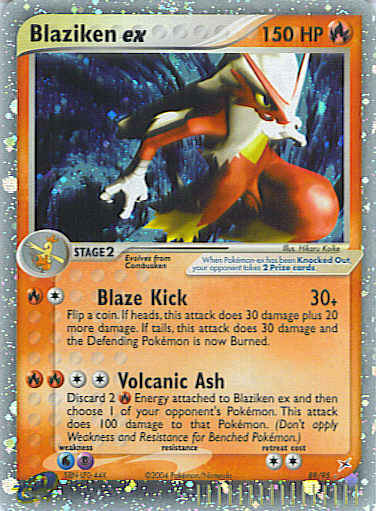 Evne[CR] Blaze Kick (30+) Flip a coin. If heads, this attack does 30 damage plus 20 more damage. If tails, this attack does 30 damage and the Defending Pokemon is now Burned.