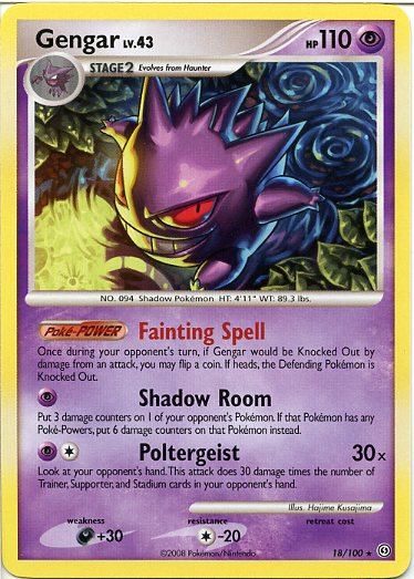 [P] Shadow Room - Put 3 damage counters on 1 of your opponent's Pokemon. If that Pokemon has any Poke-Powers, put 6 damage counters on that Pokemon instead.