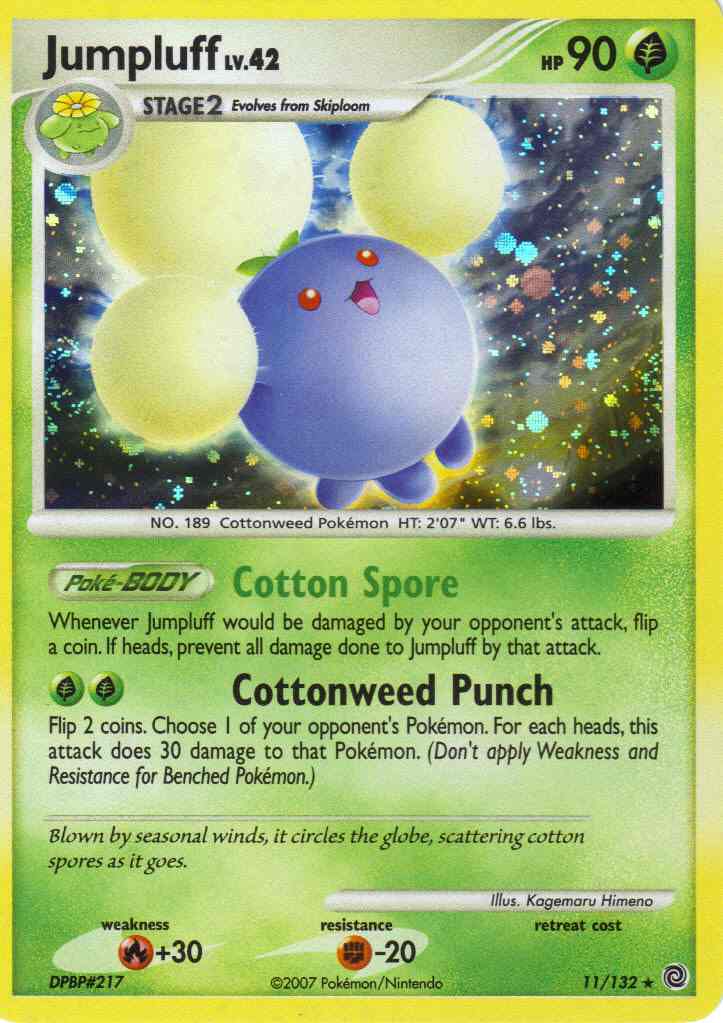 | Type | Grass | | Pokemon serie | Secret Wonders | | Stadie | Stage 2 | | HP | 90.0 | | Sjældenhed | Rare | | Tilbagetrækning | 0.0 | | Modstand | F-20 | | Svaghed | R+30 | | Kortnummer | 11 | | Evne |