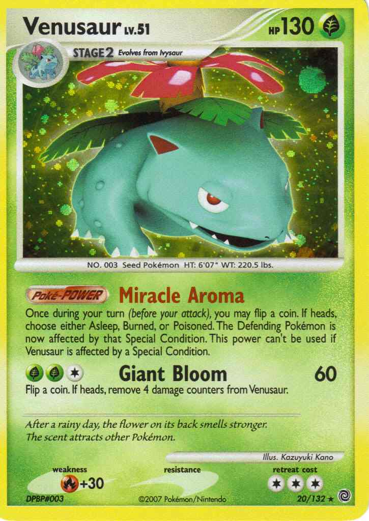 Evne [CGG] Giant Bloom (60) Flip a coin. If heads, remove 4 damage counters from Venusaur.