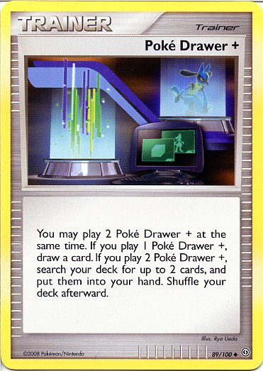 Evne You may play 2 Poke Drawer + at the same time. If you play 1 Poke Drawer +, draw a card. If you play 2 Poke Drawer +, search your deck for up to 2 cards, and put them into your hand. Shuffle your deck afterward.