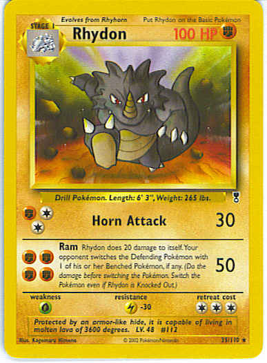 [FFFF] Ram (50) Rhydon does 20 damage to itself. If your opponent has any Benched Pokemon, he or she chooses 1 of them and switches it with the Defending Pokemon. (Do the damage before switching the Pokemon. Switch the Pokemon even if Rhydon is knocked out.)