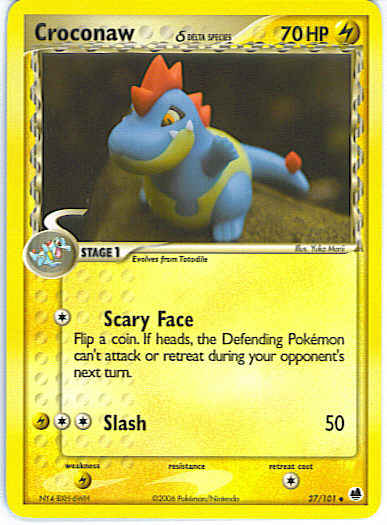 Evne[C] Scary Face - Flip a coin. If heads, the Defending Pokemon can't attack or retreat during your opponent's next turn.