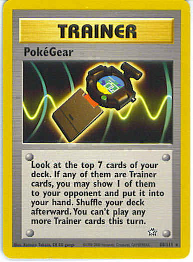 Evne2 Look at the top 7 cards of your deck. If any of them are Trainer cards, you may show 1 of them to your opponent and put it into your hand. Shuffle your deck afterward. You can't play any more Trainer cards this turn.