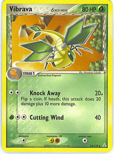 | Type | Grass | | Pokemon serie | Holon Phantoms | | Stadie | Stage 1 | | HP | 80 | | Sjældenhed | Uncommon | | Tilbagetrækning | 1 | | Modstand | FL | | Svaghed | C | | Kortnummer | 54 | | Evne | [CC] Knock Away (20+) Flip a coin. If heads, this attack does 20 damage plus 10 more damage. [CCG] Cutting Wind (40) | | Evne2 | [CC] Knock Away (20+) Flip a coin. If heads, this attack does 20 damage plus 10 more damage. [CCG] Cutting Wind (40) | | Kunstner | Midori Harada |